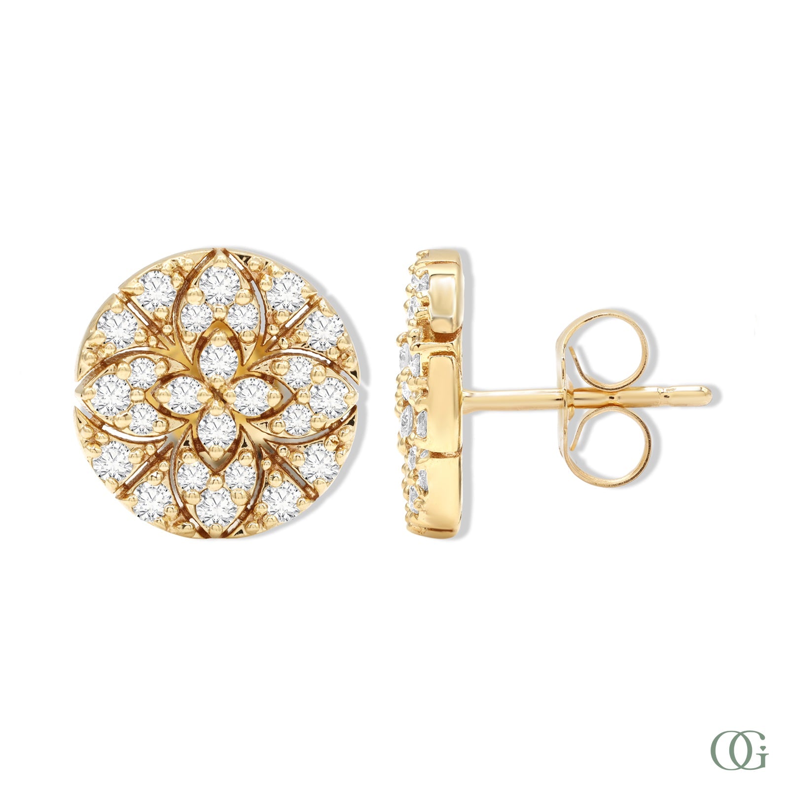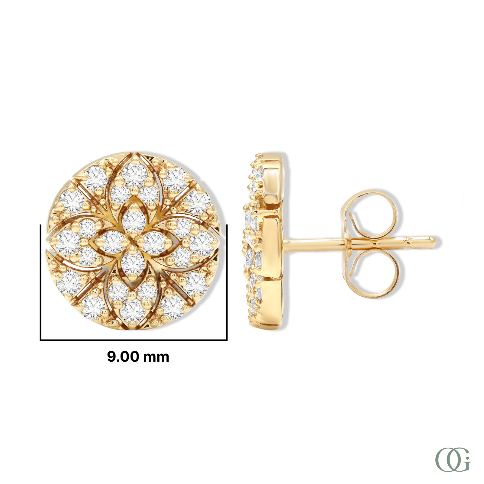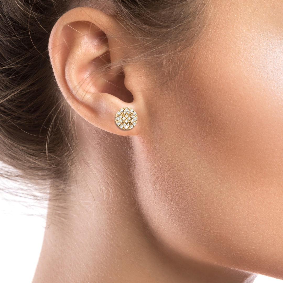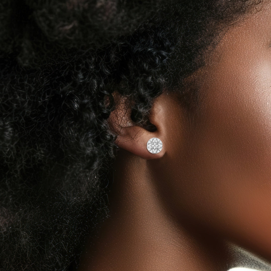Our Circle Floral Diamond Earrings will add a touch of elegance to any ensemble. Featuring a scintillating circle of diamonds accents set in a floral pattern, these earrings are sure to turn heads. Classy and timeless, they will make the perfect gift. Earrings Size 9 mm